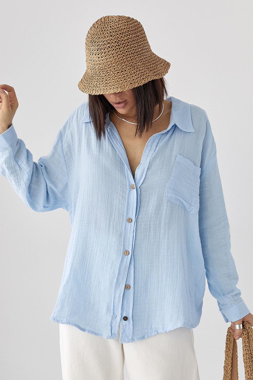 Муслінова сорочка на ґудзиках — легка та повітряна модель, яка чудово підходить для теплих днів і створення розслаблених образів.